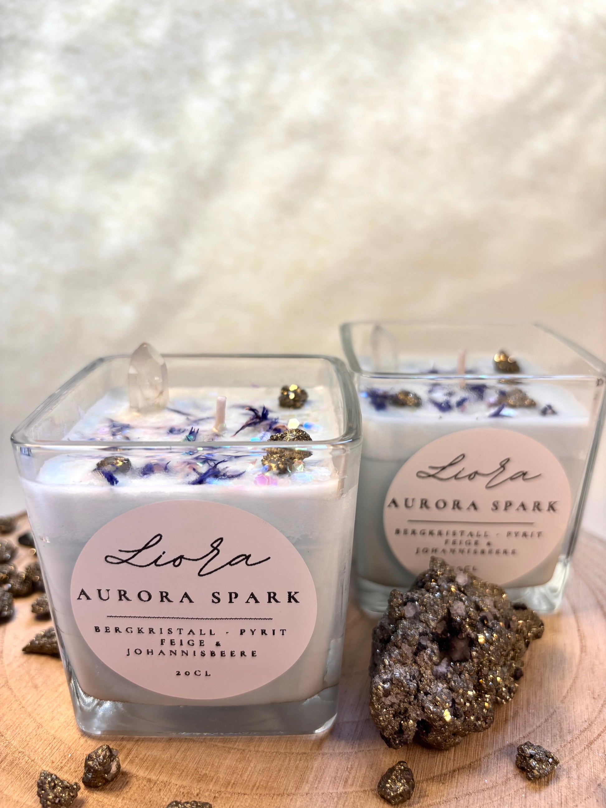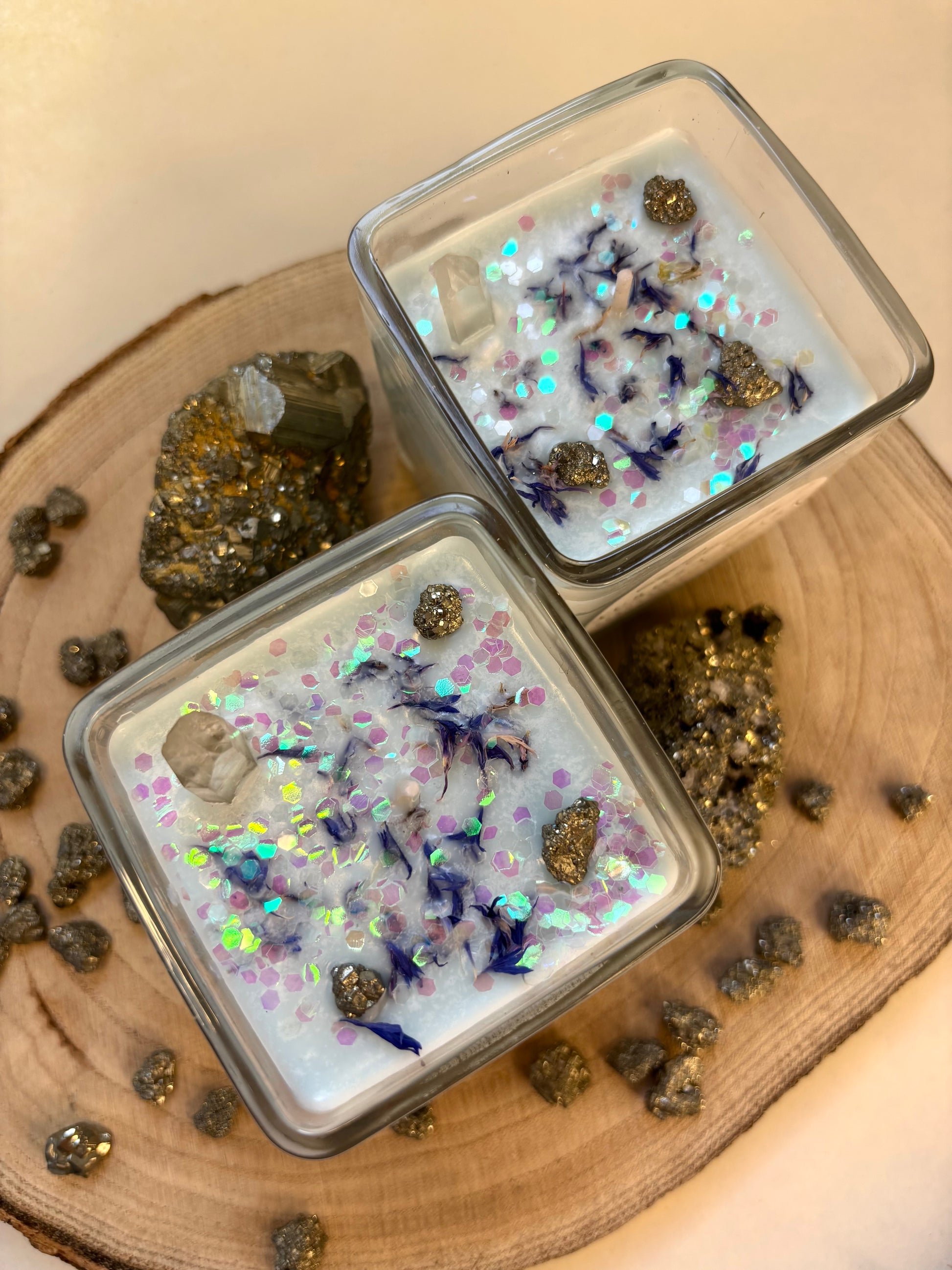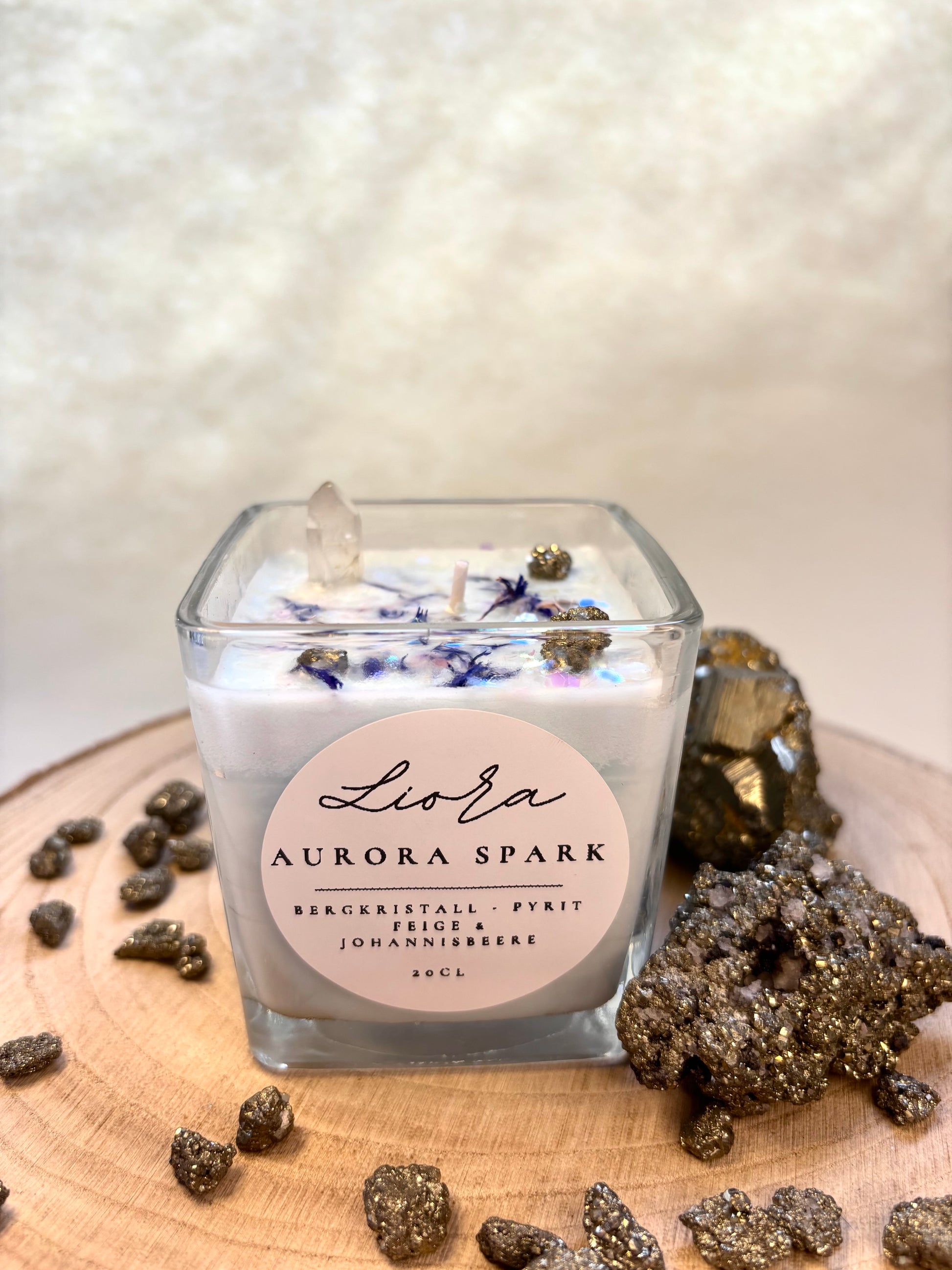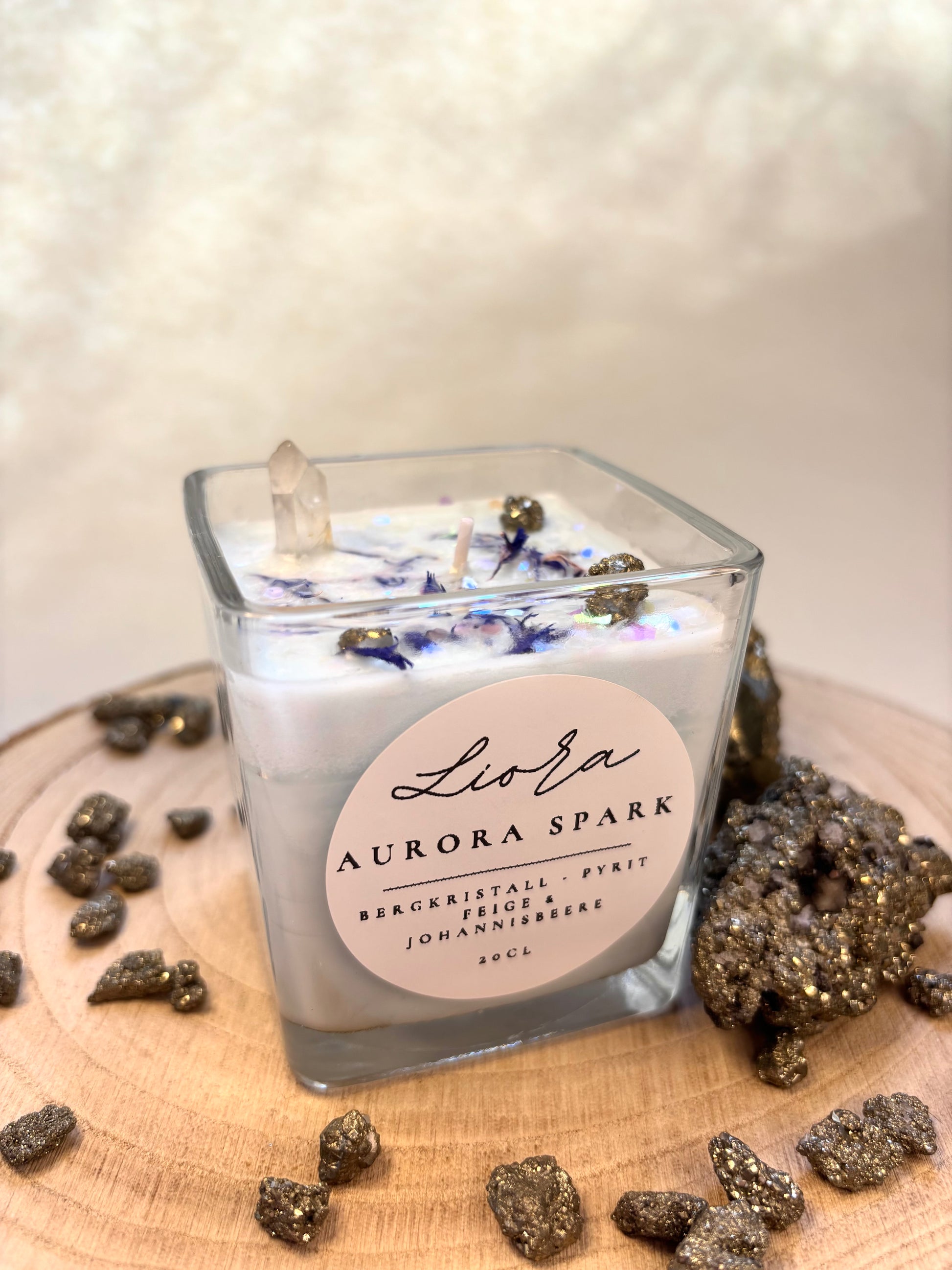Diese handgefertigte Kerze aus reinem Sojawachs ist mit dem kraftvollen Bergkristall & Pyrit und hochwertigen ätherischen Ölen veredelt.